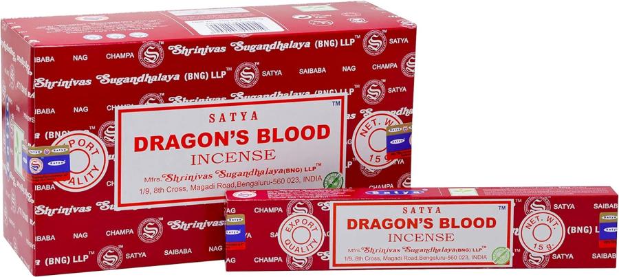 SATYA Dragon's Blood 15 Sticks. Each packet has 15 incenses in it.Direction For Use:- Fit the incense stick into an incense burner. Light tip of the coated end of the stick with a flame. Once tip is glowing, carefully blow out the flame.100% Recyclable Materials Used For Packaging